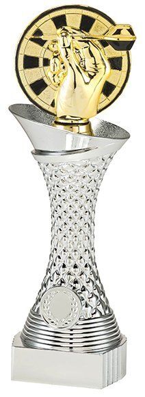Dart Pokal Silber mit Goldener Dartscheibe in 3 Größen Lieferbar 23,5cm - 25,5cm - 27,5cm